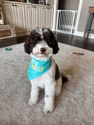 F1 Bordoodles tend to be low shed and have more of a wavy coat that requires some maintenance at home, regular brushing and/or light trimming. Professional grooming will likely be needed every few months.